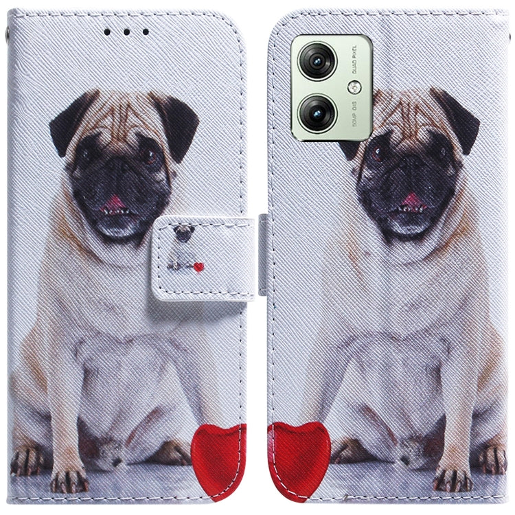 Funda de Cuero para Motorola Moto G54 con Tapa y Dibujo Coloreado (Pug)