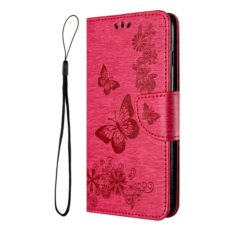 Funda de Cuero para Motorola Moto G54 con Tapa en Relieve de Mariposa (Rojo)
