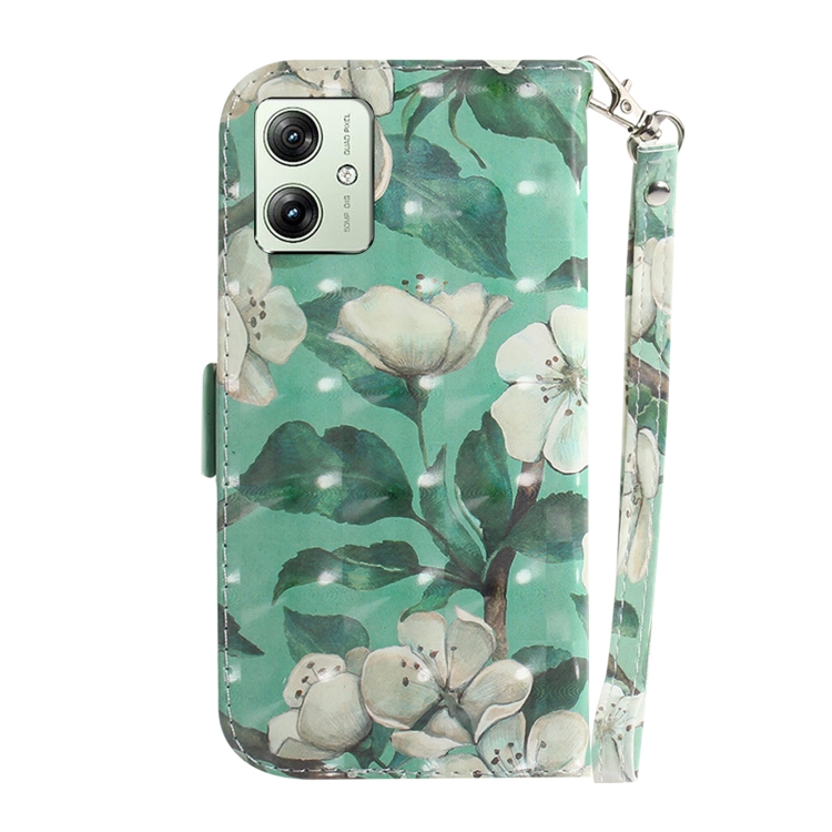 Funda de Cuero para Motorola Moto G54 con Tapa Horizontal y Diseño 3D Flor de Acuarela