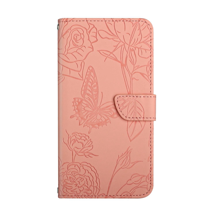 - 1x Funda de Cuero para Motorola Moto G54 HT03 Skin Feel Butterfly con Tapa en Relieve (Rosa)