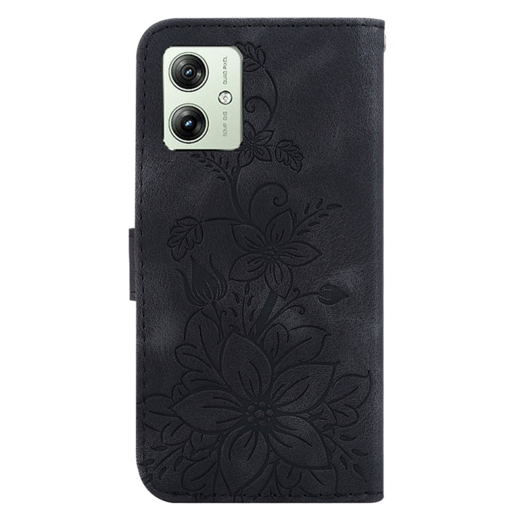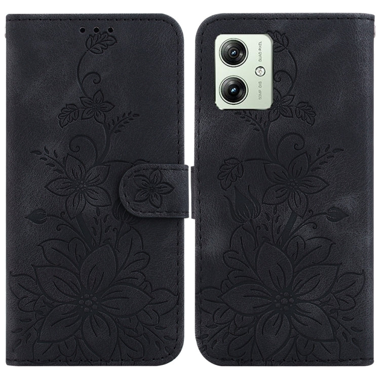 Funda para Motorola Moto G54 Lily de Cuero en Relieve (Negro)