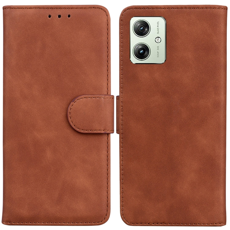 Funda de Cuero con Tapa para Motorola Moto G54 Skin Feel Pure Color (Marrón)