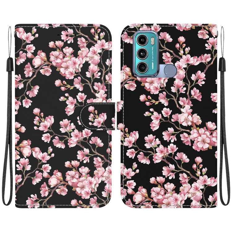 Funda de Cuero para Motorola Moto G60 / G40 Fusion con Dibujo Coloreado (Flor de Ciruelo)