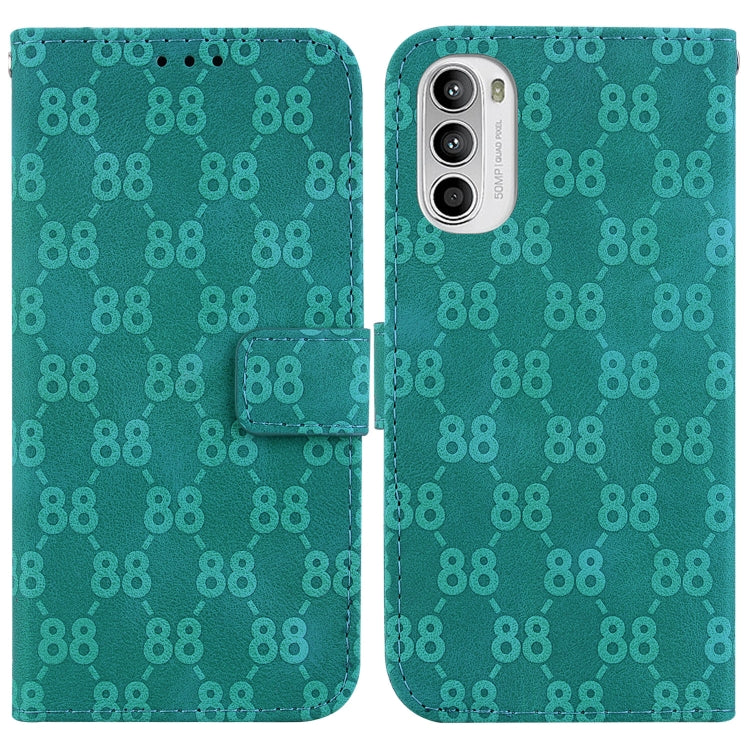 Estuche para Motorola Moto G62 5G de Cuero en Relieve con Doble Forma de 8 (Verde)