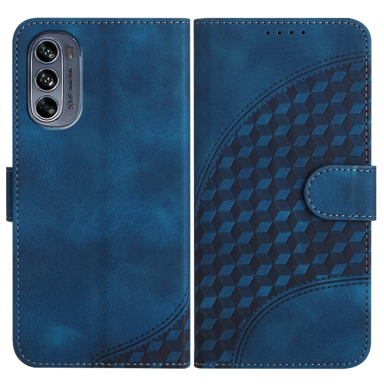 Funda de Cuero Motorola Moto G62 5G Yx0060 con Relieve y Cabeza de Elefante con Cordón (Azul Real)