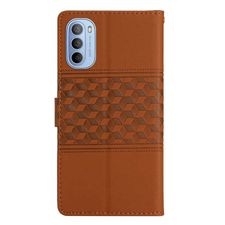 Funda de Cuero para Motorola Moto G62 con Cordón Diamond Relieve Skin Feel (Marrón)