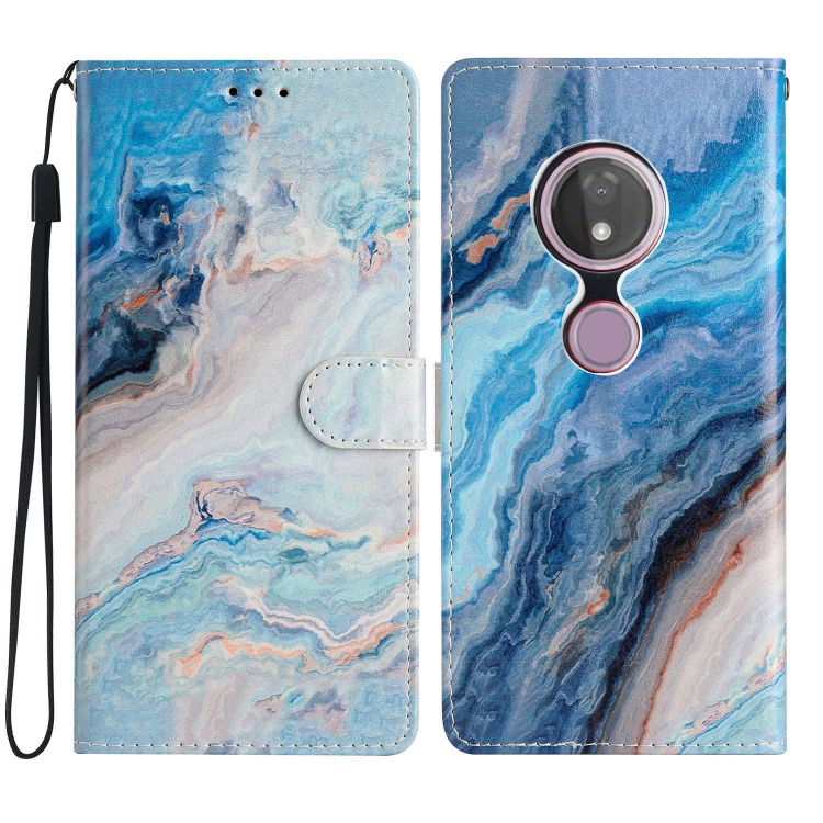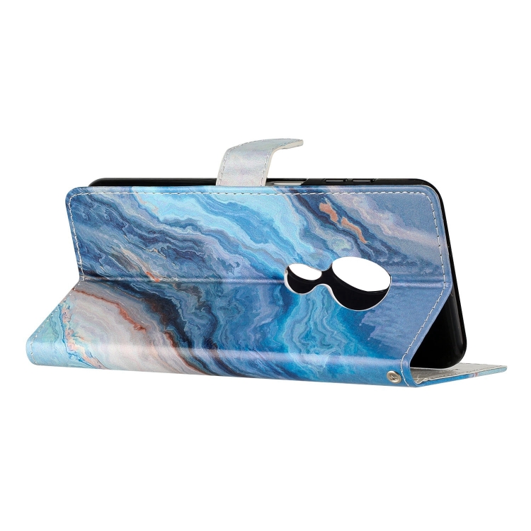 - 1x Funda de Cuero para Motorola Moto G7 Power Colored Drawing (Mármol Azul)