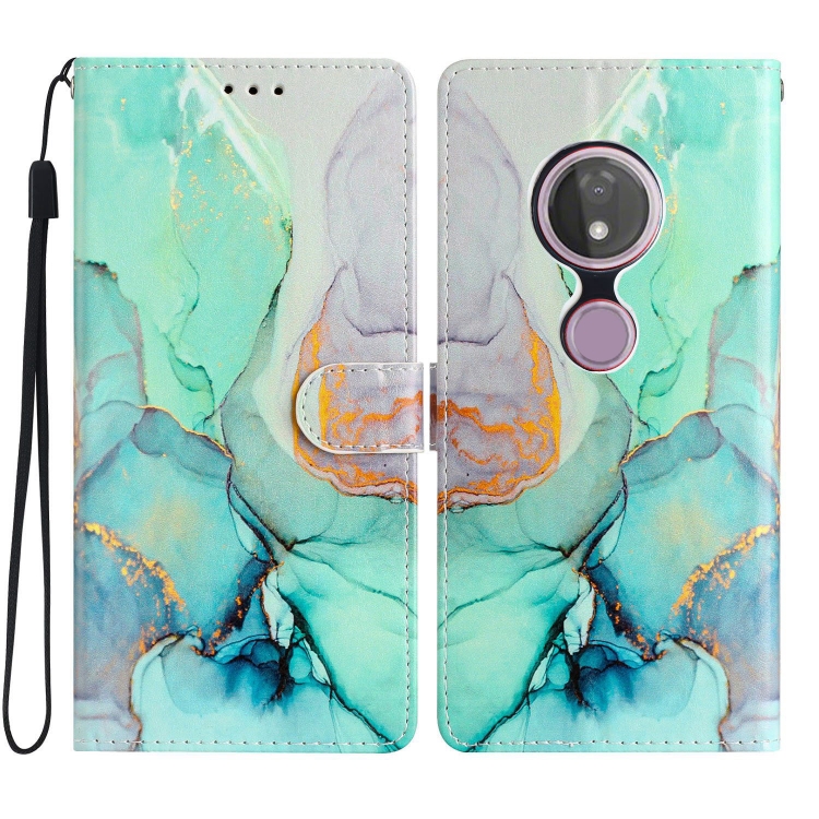 - 1x Funda de Cuero para Motorola Moto G7 Power Colored Drawing Mármol Verde