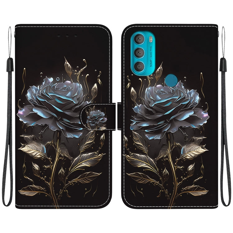 Funda de Cuero para Motorola Moto G71 con Dibujo Coloreado y Textura de Cristal (Rosa Negra)