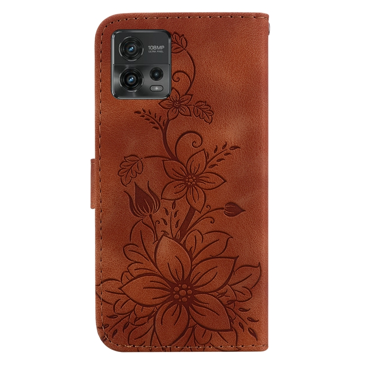 - 1x Funda de Cuero con Relieve Lily para Motorola Moto G72 (Marrón)