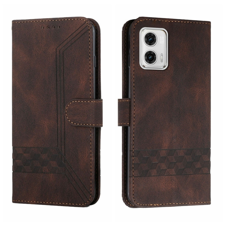 Funda de Cuero con Tapa para Motorola Moto G73 Cubic Skin Feel (Marrón)
