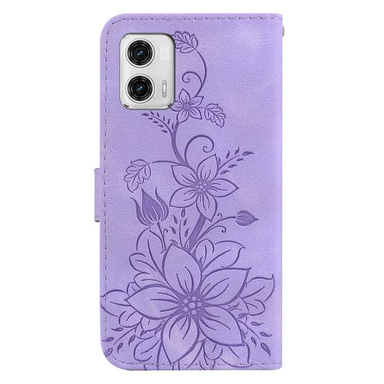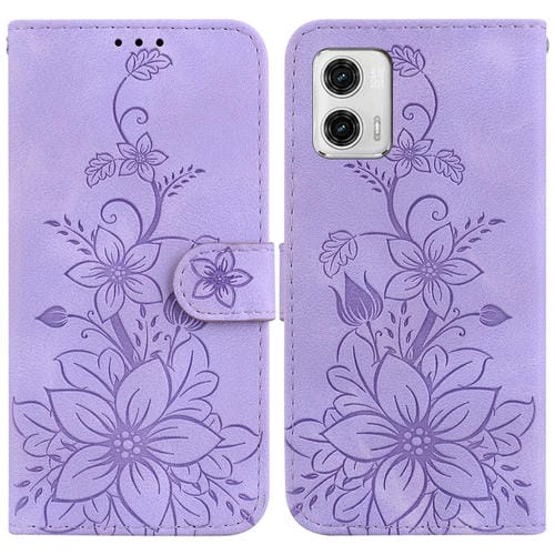 - 1x Funda de Cuero para Motorola Moto G73 con Relieve Lily (Púrpura)