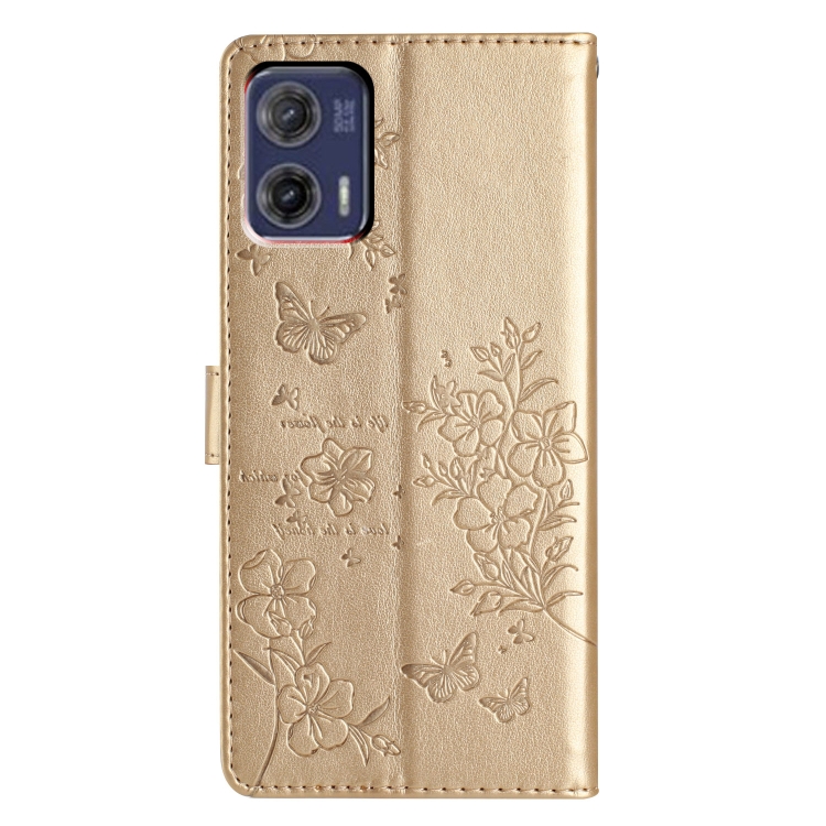 Funda de Cuero para Motorola Moto G73 con Mariposas y Flores (Dorado)