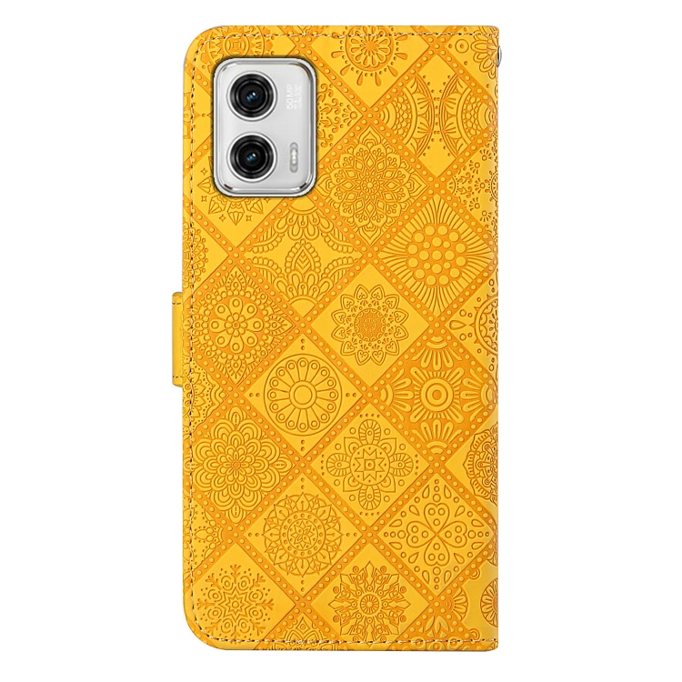 Funda de Cuero para Motorola Moto G73 con Patrón en Relieve Estilo Étnico (Amarillo)
