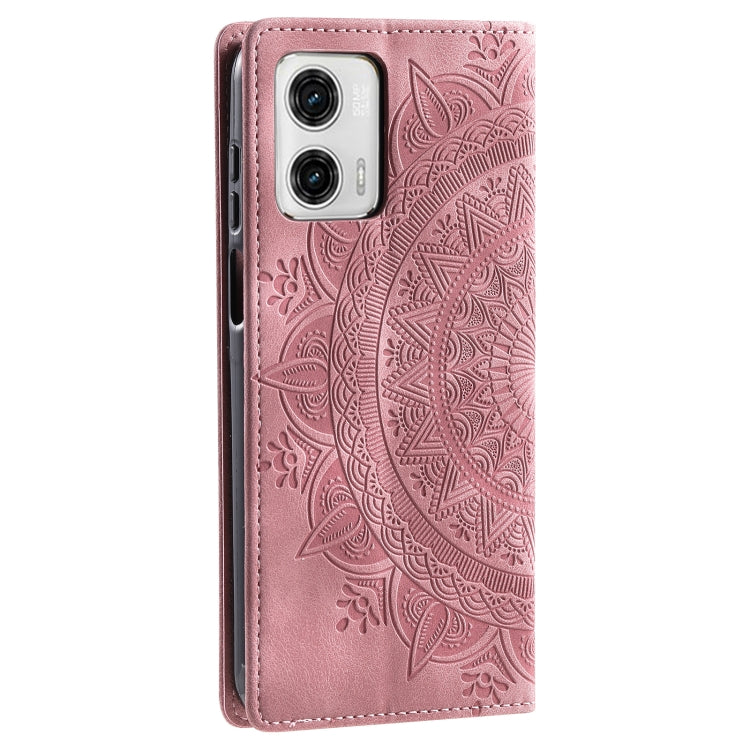 Funda de Cuero Magnética para Motorola Moto G73 Totem en Relieve (Oro Rosa)