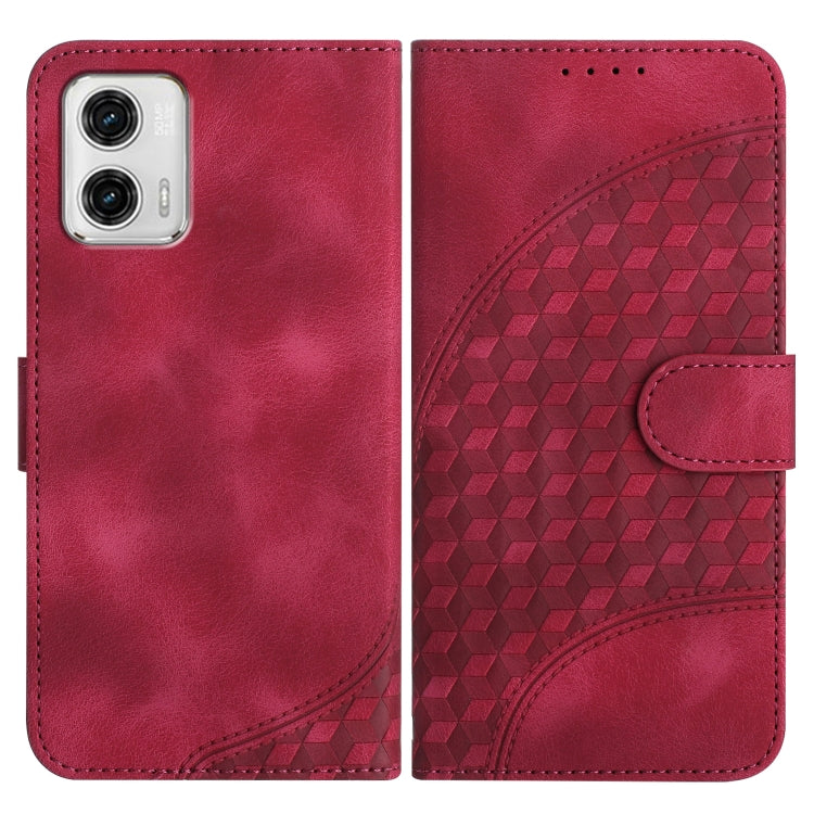 Funda de Cuero para Motorola Moto G73 Yx0060 con Relieve y Cabeza de Elefante con Cordón (Rojo Rosa)