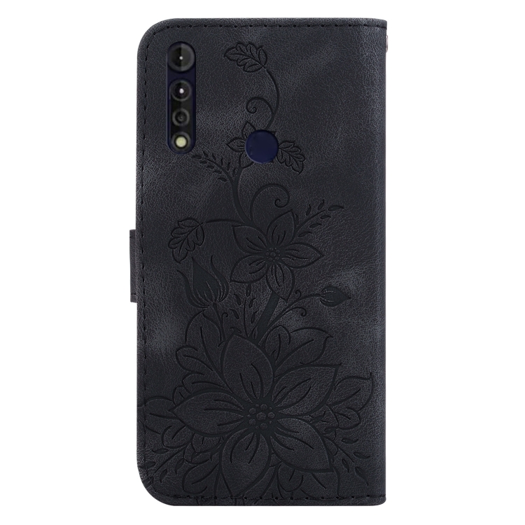 Funda de Cuero con Relieve Lily para Motorola Moto G8 Power Lite (Negro)