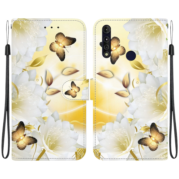 Funda de Cuero para Motorola Moto G8 Power Lite con Dibujo Epiphyllum de Mariposa Dorada (Textura Cristal)