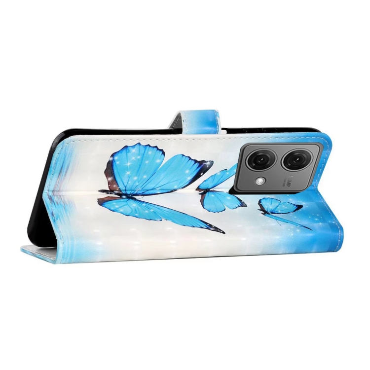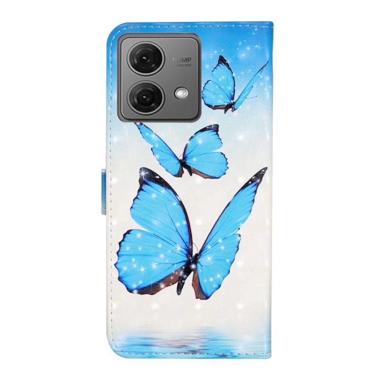 Funda de Cuero para Motorola Moto G84 5G con Dibujo 3D en Relieve al Óleo (3 Mariposas)