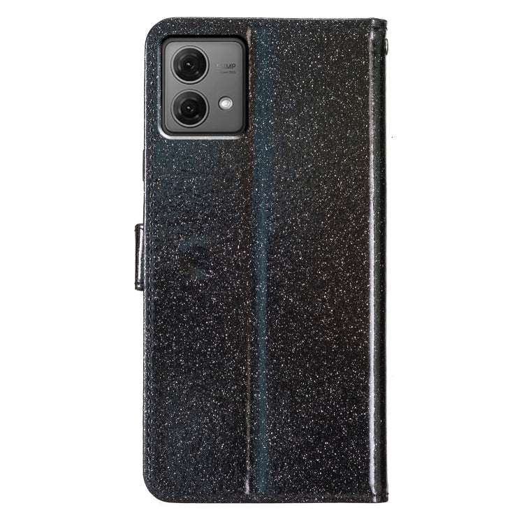 Funda de Cuero para Motorola Moto G84 5G con Tapa en Polvo y Purpurina (Negro)