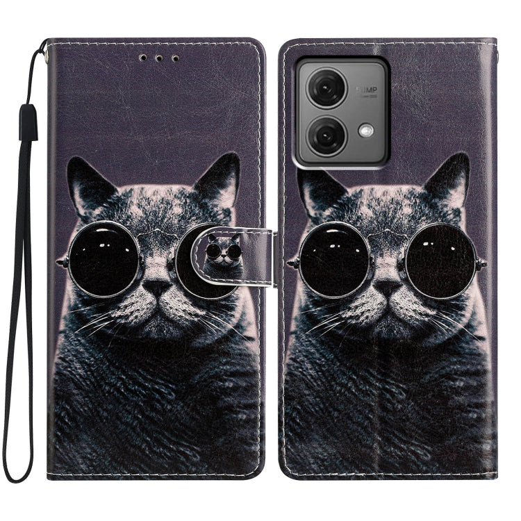 Funda de Cuero para Motorola Moto G84 5G con Dibujo Coloreado Gato de Gafas de Sol