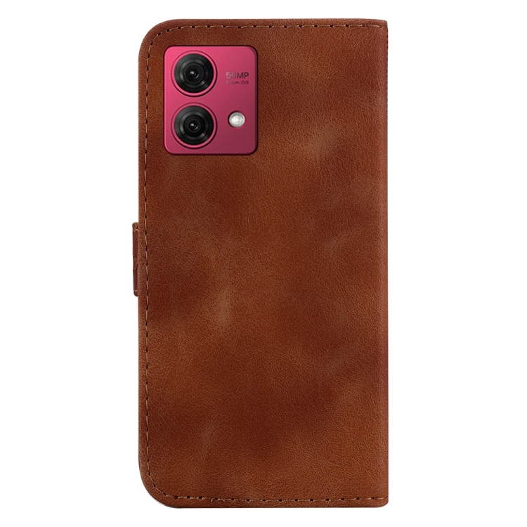 Funda de Cuero para Motorola Moto G84 con Relieve en Forma de 7 (Marrón)
