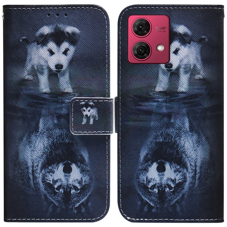 Funda de Cuero con Tapa para Motorola Moto G84 con Dibujo Coloreado (Lobo y Perro)