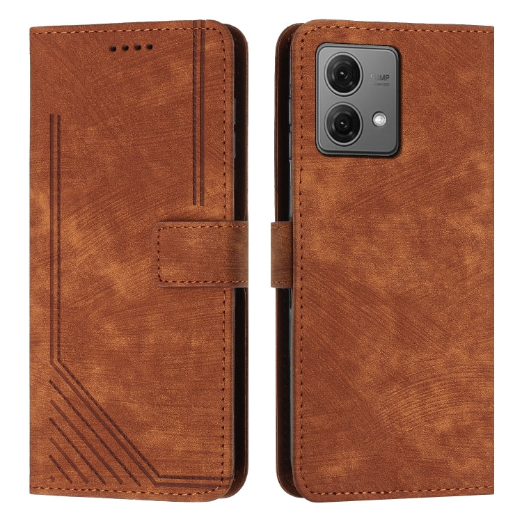 Funda de Cuero para Motorola Moto G84 Skin Feel con Patrón de Rayas y Cordón (Marrón)