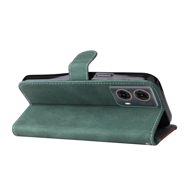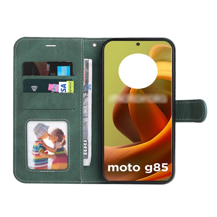 Funda de Cuero para Motorola Moto G85 con Empalme de Tres Colores (Verde)