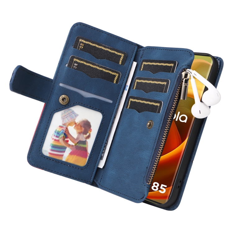 Funda para Motorola Moto G85 de Cuero con Billetera, Cremallera y 9 Ranuras para Tarjetas (Azul)