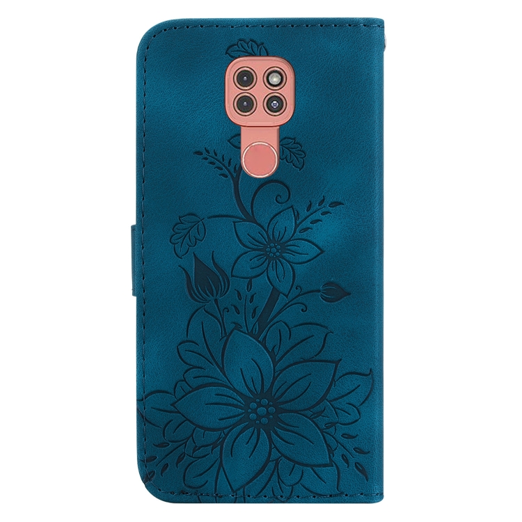 - 1x Funda de Cuero con Relieve Lily para Motorola Moto G9 Play y E7 Plus (Azul Oscuro)