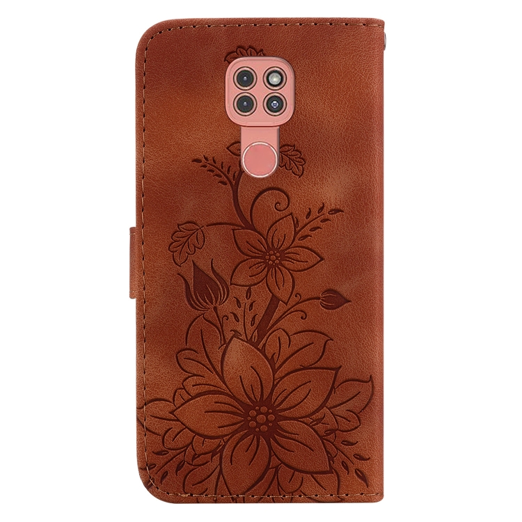 Funda de Cuero con Relieve Lily para Motorola Moto G9 Play y E7 Plus (Marrón)