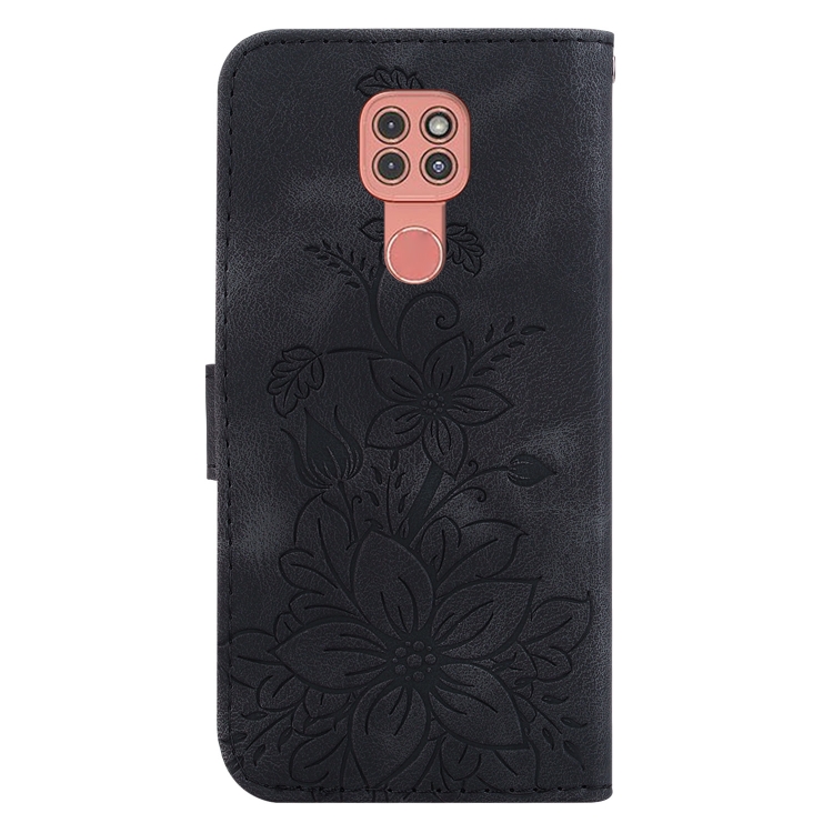 • 1x Funda de Cuero con Relieve Lily para Motorola Moto G9 Play y E7 Plus (Negro)