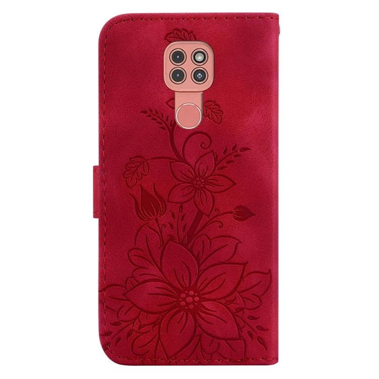 - 1x Funda de Cuero con Relieve Lily para Motorola Moto G9 Play y E7 Plus (Rojo)