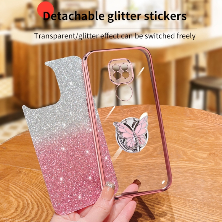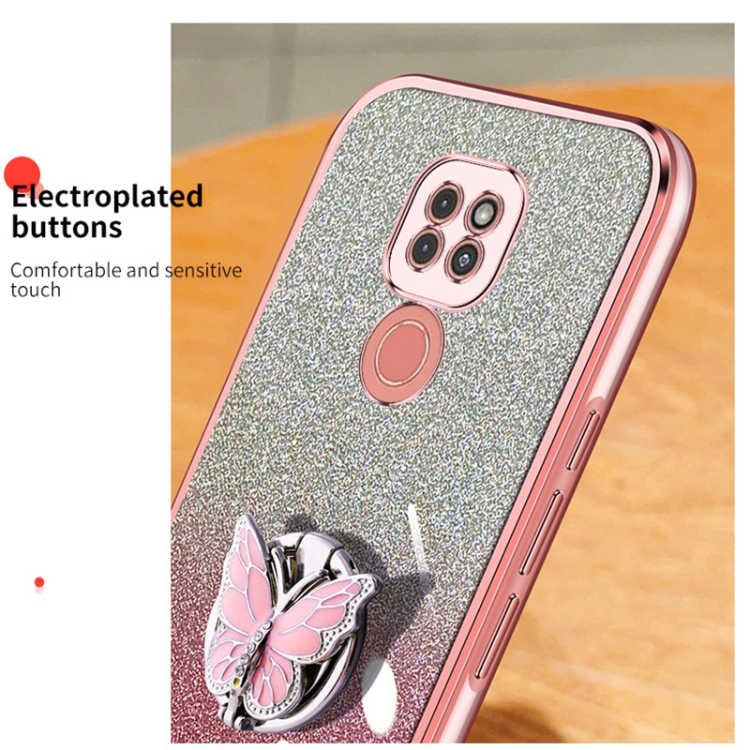 Funda TPU para Motorola Moto G9 Play con Soporte de Mariposa y Brillo Degradado (Plata)