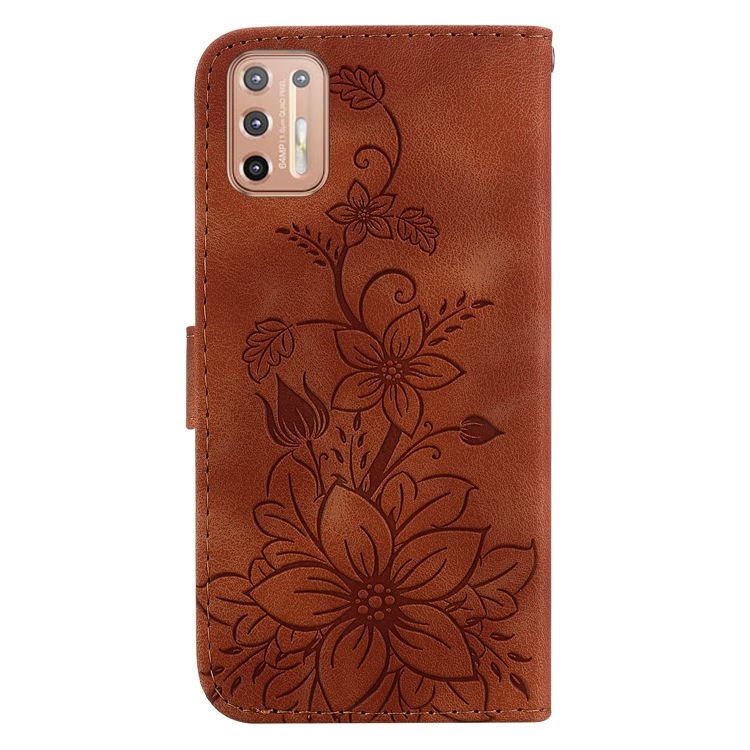 - 1x Funda de Cuero con Relieve Lily para Motorola Moto G9 Plus (Marrón)