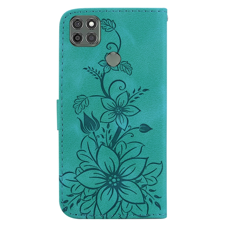 - 1x Funda de Cuero para Motorola Moto G9 Power Lily en relieve (Verde)