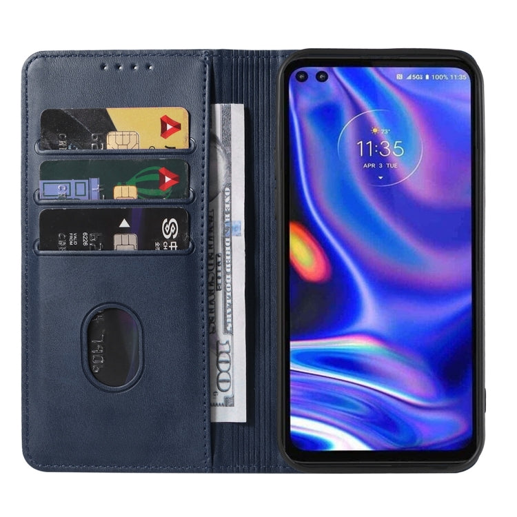 Funda de Cuero para Motorola Moto One 5G Uw con Cierre Magnético (Azul)