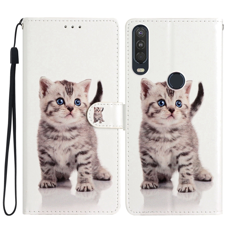 • 1x Funda de Cuero para Motorola Moto One Action con Dibujo Coloreado (Little Tabby Cat)