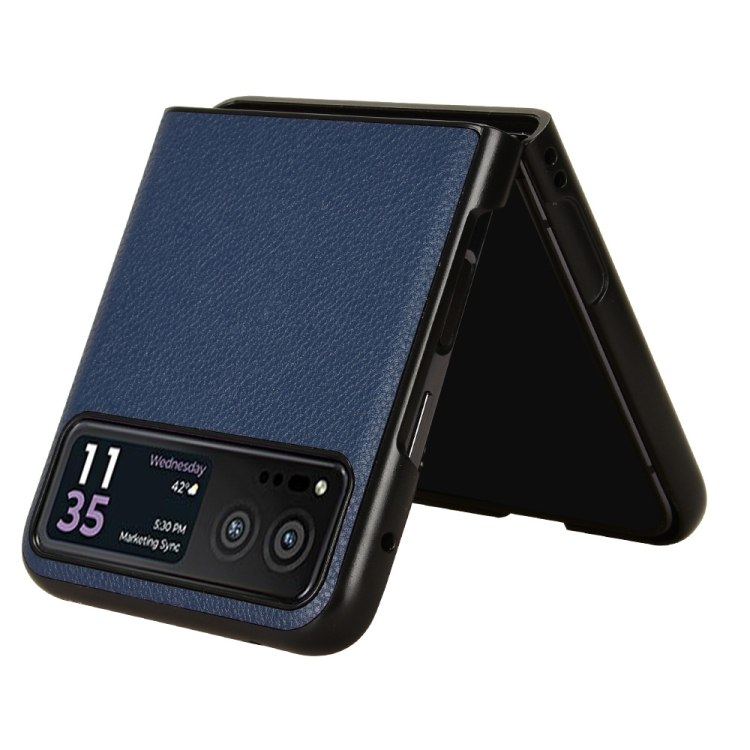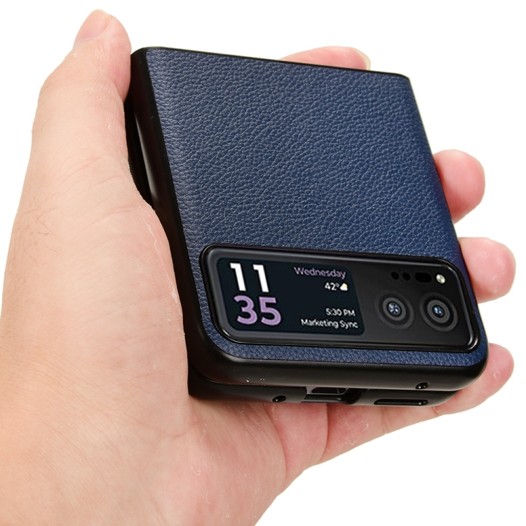 - 1x Funda para Motorola Moto Razr 40 con ranura para Tarjeta y textura Litchi (Azul)