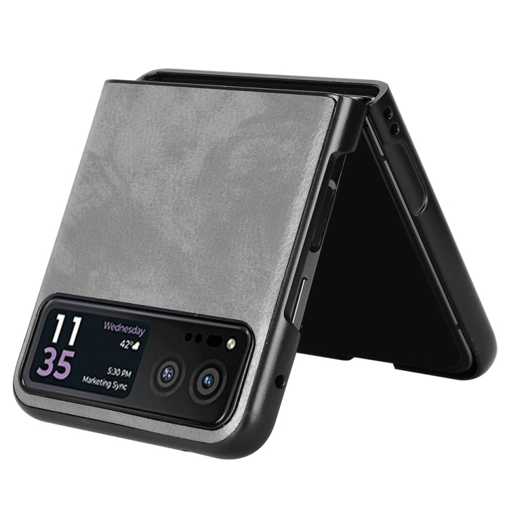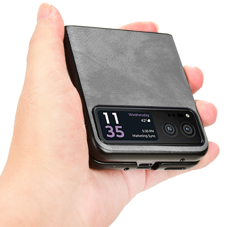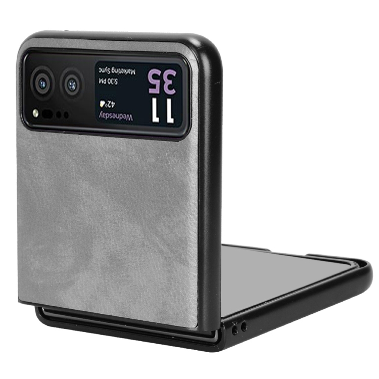 - 1x Funda para Motorola Moto Razr 40 con Tapa Trasera Litchi Texture (Gris)