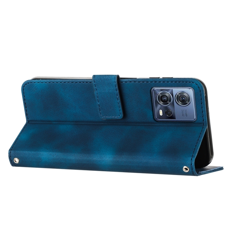 - 1x Funda de Cuero con Cordón para Motorola Moto S30 Pro Edge 30 Fusion Dream Triangle (Azul)