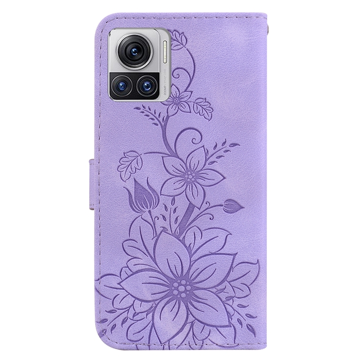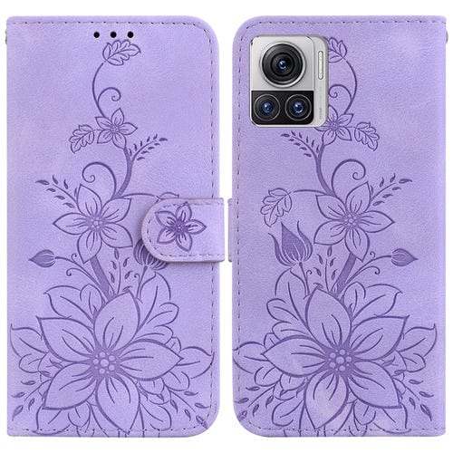 - 1x Funda para Teléfono Motorola Moto X30 Pro Edge 30 Ultra 5G Cuero con Relieve Lily (Púrpura)