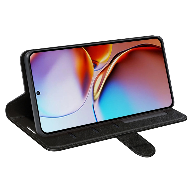 Funda de Cuero Flip para Motorola Moto X40 Pro R64 con Textura Horizontal (Negro)