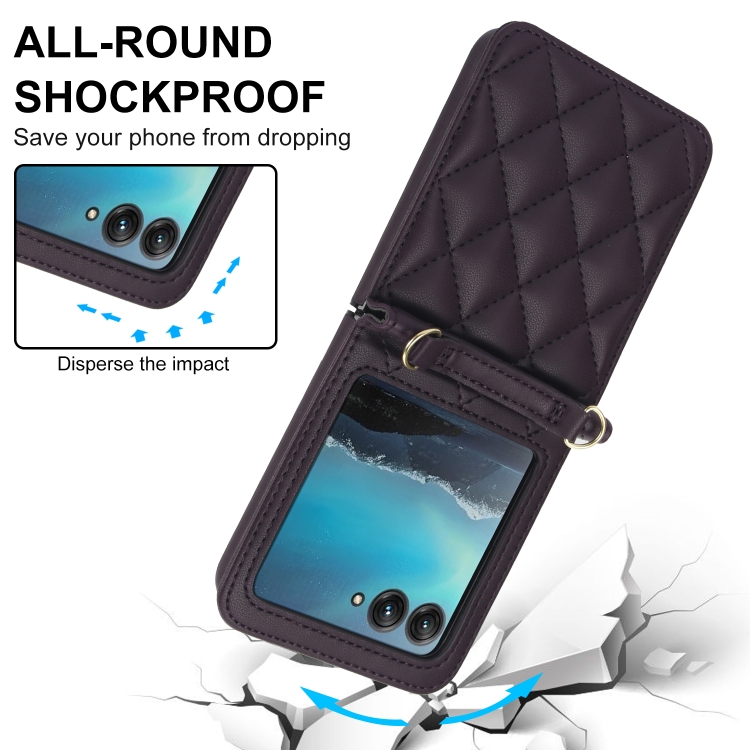 Estuche para Motorola Razr 40 con Textura Ultra Rómbica y Cordón Largo y Corto (Púrpura Oscuro)