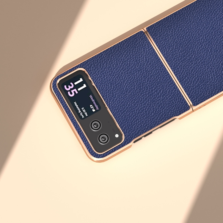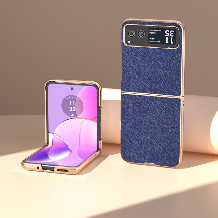 Funda para Motorola Razr 40 con Nanochapado de Cuero Genuino Serie Mino (Azul Real)