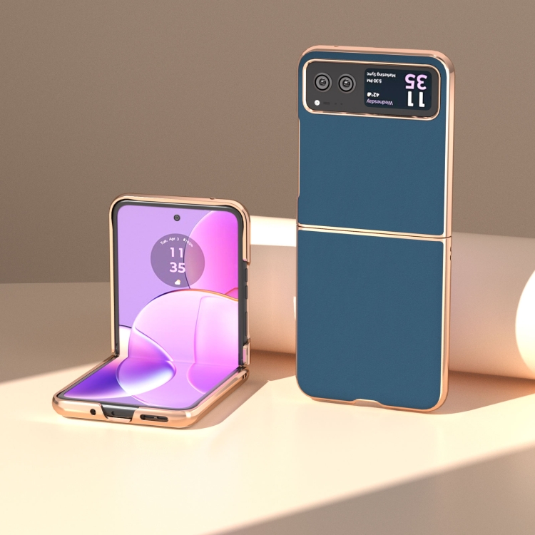 - 1x Funda para Motorola Razr 40 con Revestimiento Nano Serie Silk Cuero Genuino (Azul)