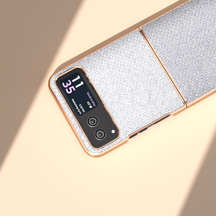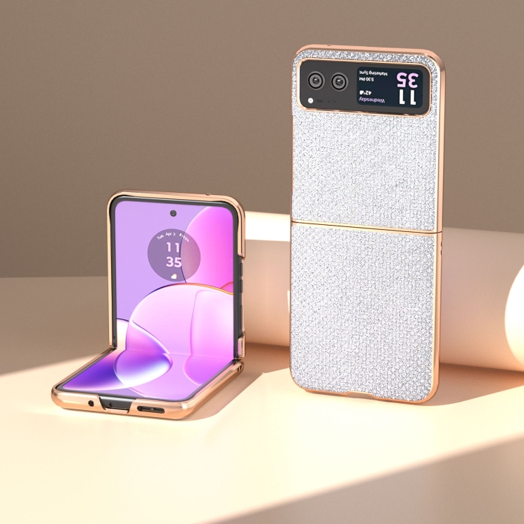 Funda para Motorola Razr 40 con Textura de Diamante y Nanochapado (Plateado)