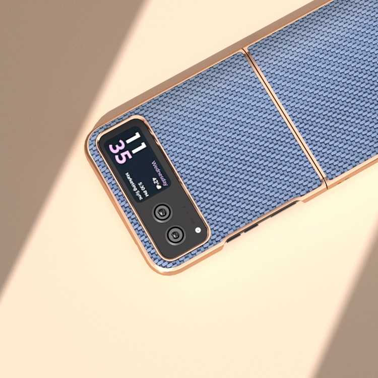 Funda para Motorola Razr 40 con Textura de Fibra de Carbono y Galvanoplastia Nano (Azul Cielo)