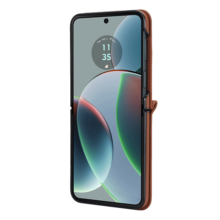 Funda para Motorola Razr 40 con Textura Rómbica y Cordón Largo y Corto (Marrón)
